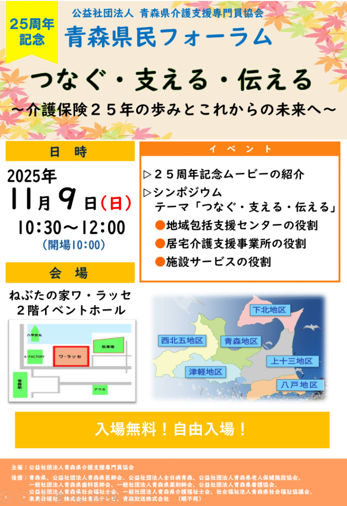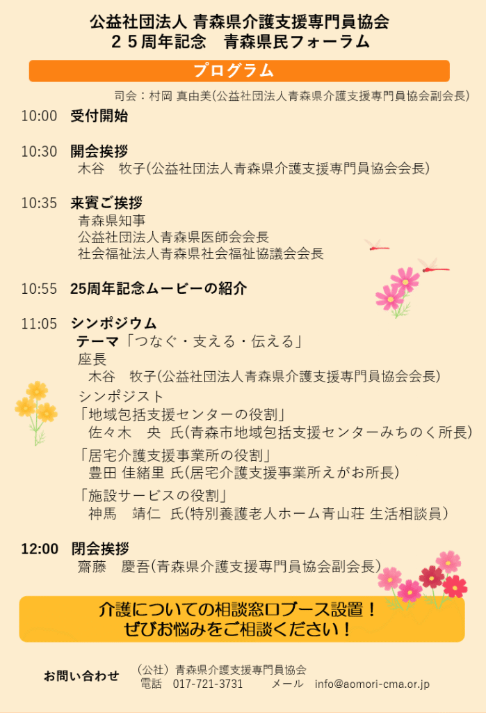 青森県介護支援専門員協会25周年記念 青森県民フォーラムを開催いたします【ご案内】